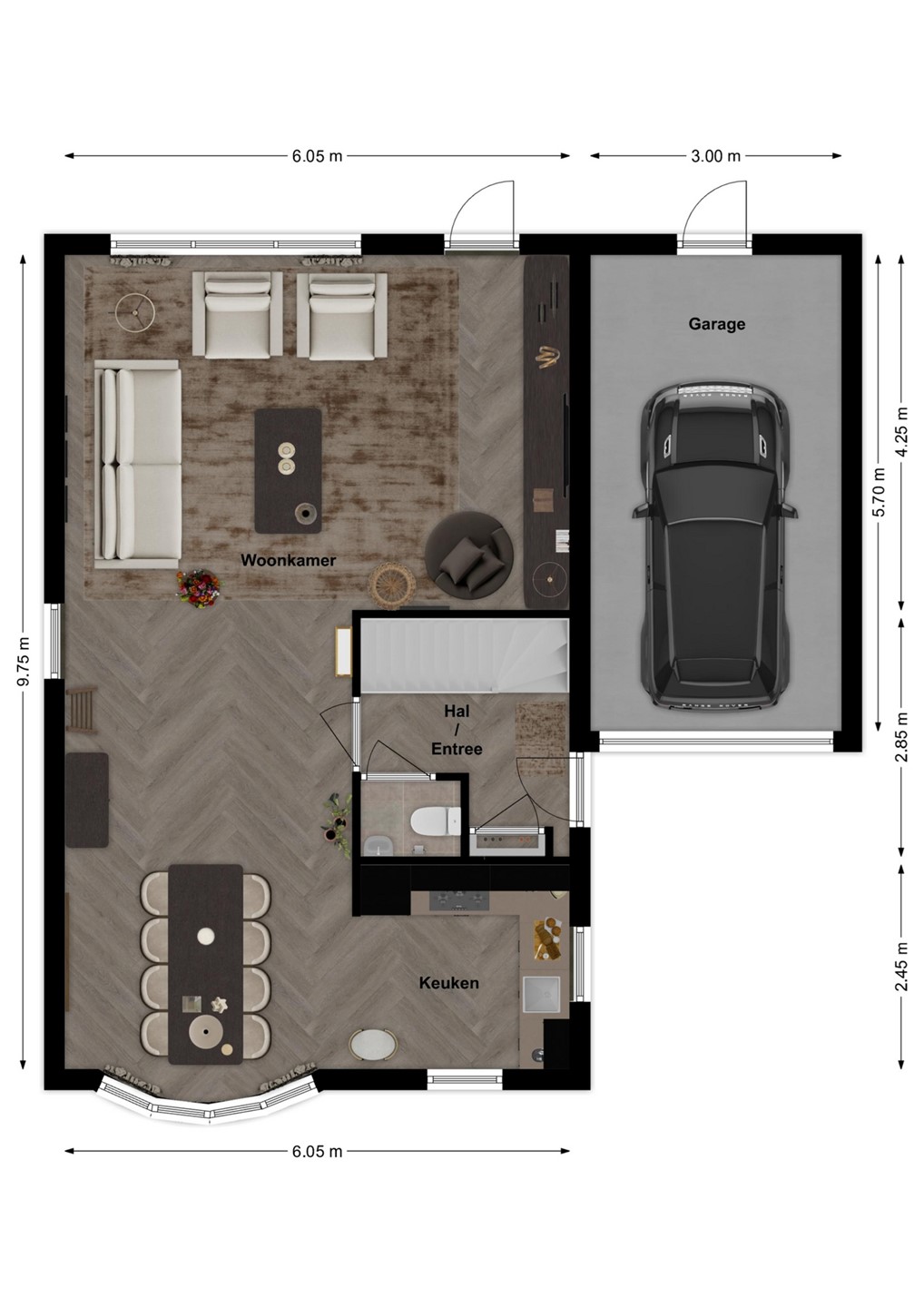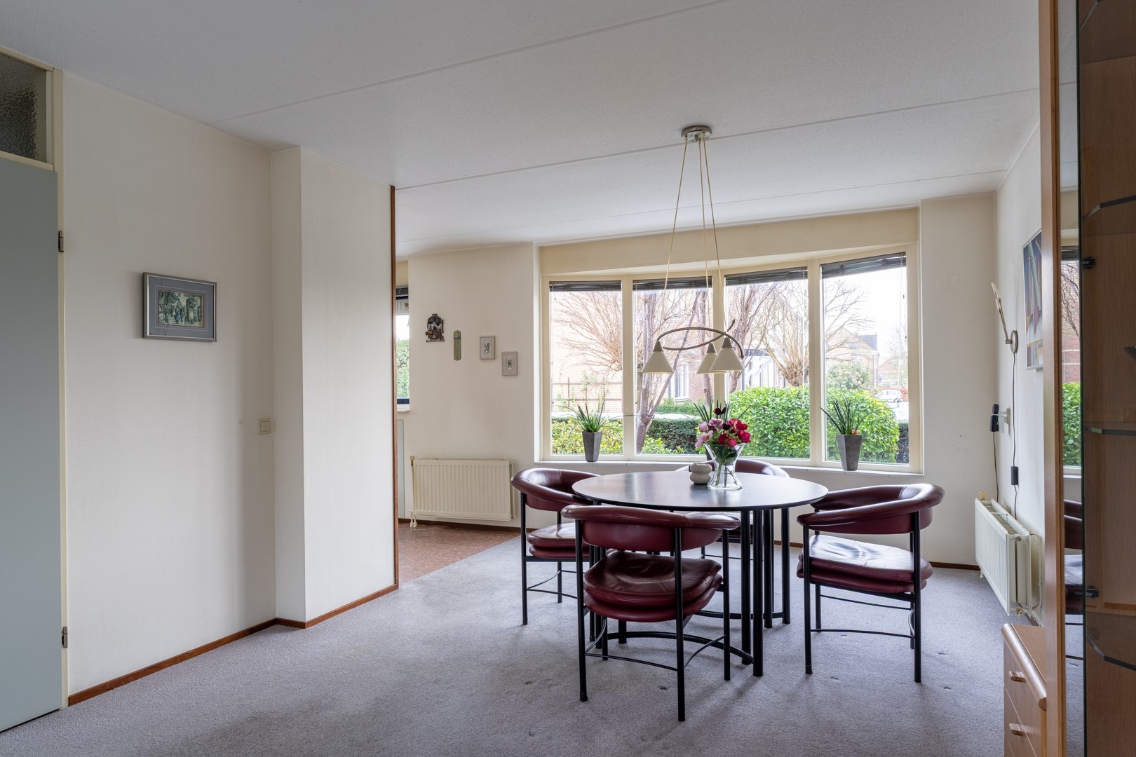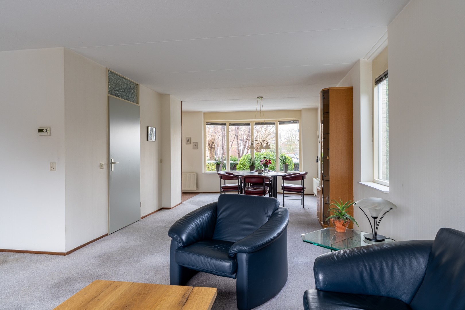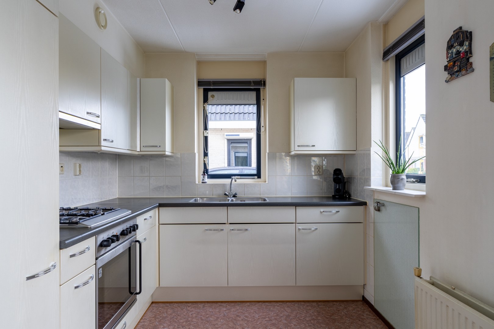 De woonkamer is opvallend ruim en meet circa 6 meter breed en 10 meter lang. Hierdoor is er meer dan voldoende ruimte voor een royale zithoek, een grote eettafel en bijvoorbeeld een sfeervolle haard of cinewall. De keuken staat in open verbinding met de eetruimte en woonkamer, wat zorgt voor een fijne, open leefomgeving. De keukenopstelling is functioneel en voorzien van deels vernieuwde apparatuur, waaronder een nieuwe koelkast. Daarnaast zijn een 4-pits gaskookplaat, afzuigkap en oven aanwezig.