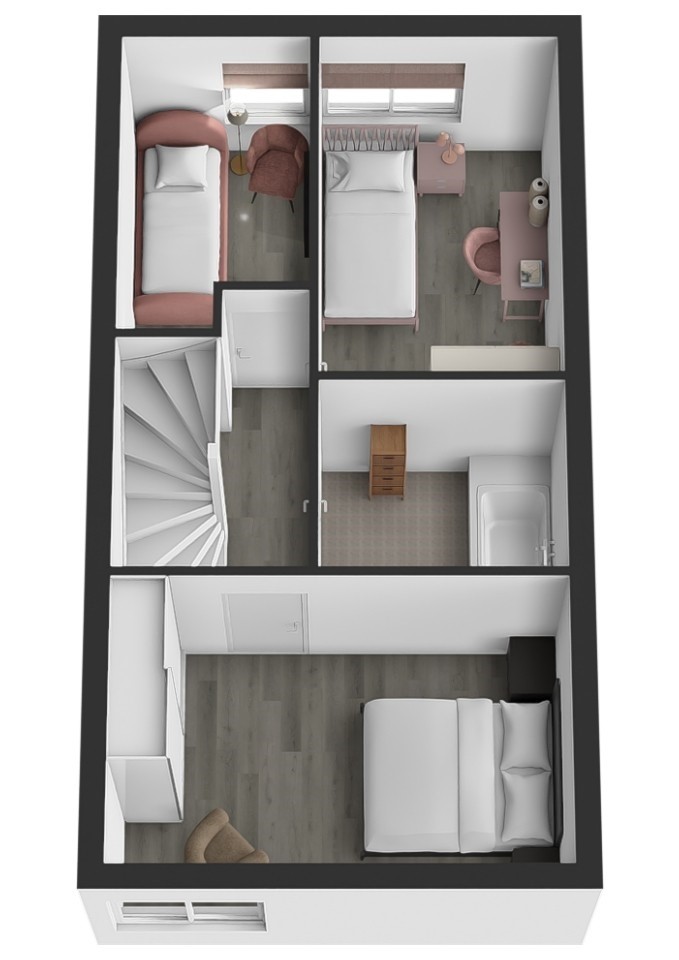 Op de eerste verdieping vind je drie volwaardige slaapkamers. Alle kamers zijn netjes afgewerkt en bieden voldoende ruimte voor een bed, kast en eventueel een bureau. Ideaal voor gezinnen met kinderen, maar ook geschikt als werk- of hobbyruimte. De badkamer is keurig en compleet uitgevoerd. Je vindt hier een ligbad met douchevoorziening, een wastafelmeubel en een tweede toilet. De tweede verdieping verrast met nog meer ruimte. Op de overloop is plek voor bijvoorbeeld de wasapparatuur en extra opslag. Daarnaast bevindt zich hier de vierde (slaap)kamer. Deze ruimte is multifunctioneel en kan perfect dienen als slaapkamer, werkkamer of hobbyruimte. Een groot pluspunt is de aanwezige airco, die ervoor zorgt dat het hier ook tijdens warme zomerdagen aangenaam koel blijft. Dat maakt deze verdieping extra comfortabel en goed bruikbaar, het hele jaar door.