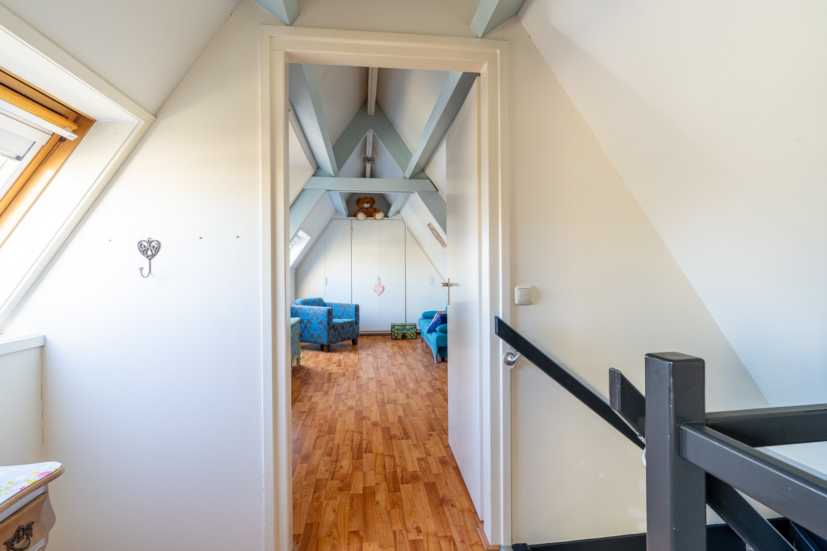 Dit is écht de kers op de taart. Via de garage kom je in een portaal met toegang tot een multifunctionele ruimte op de begane grond. Woonkamer, praktijkruimte, kantoor, chillruimte of mantelzorgvoorziening? Dankzij de eigen entree kun je hier alle kanten op. Via een vaste trap bereik je de verdieping met een overloop en twee zeer ruime slaap-/werkkamers. Ideaal voor oudere kinderen, gasten of een volledig zelfstandige woonunit.