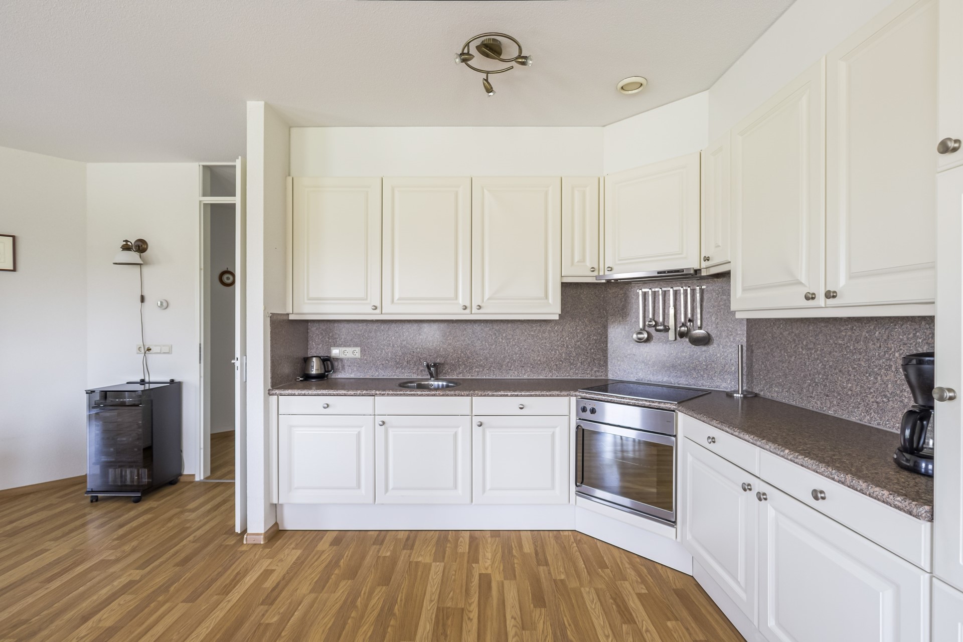 De open keuken sluit naadloos aan op de woonkamer en is praktisch ingericht. U beschikt over diverse inbouwapparatuur, waaronder een keramische kookplaat, afzuigkap, oven, koelkast en vaatwasser. De keuken is functioneel en verzorgd. Uiteraard kunt u er ook voor kiezen om de opstelling naar eigen smaak te moderniseren.