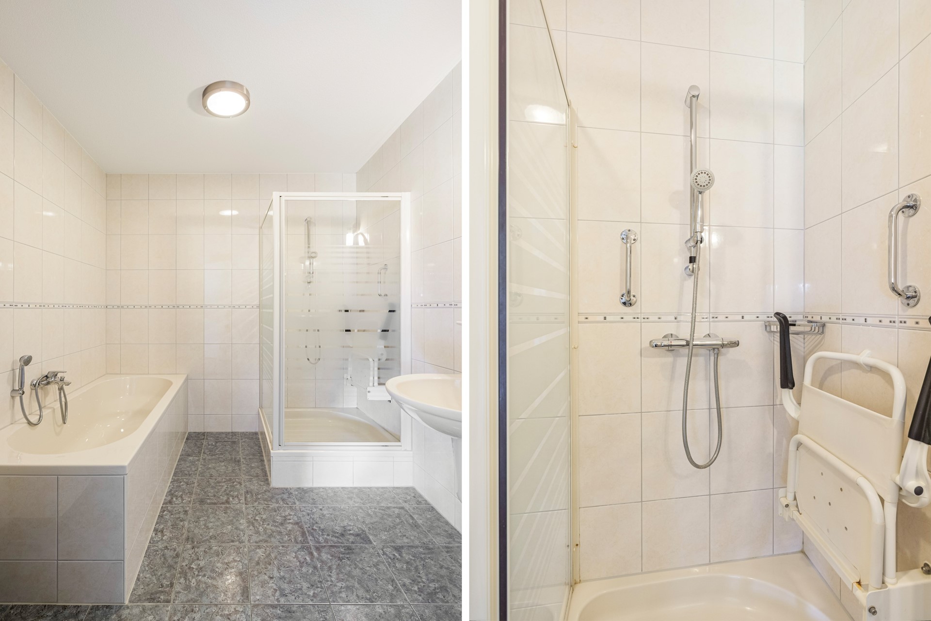 Het appartement beschikt over twee comfortabele slaapkamers. Eén slaapkamer is voorzien van een vaste kast, terwijl de andere slaapkamer directe toegang biedt tot het balkon via een schuifpui. De badkamer is compleet uitgerust met een ligbad, douche, wastafel en een designradiator. Daarnaast is er een separate toiletruimte met fontein. De praktische bijkeuken herbergt de cv-ketel, wasmachineaansluiting, een uitstortgootsteen en de mechanische ventilatie-installatie.