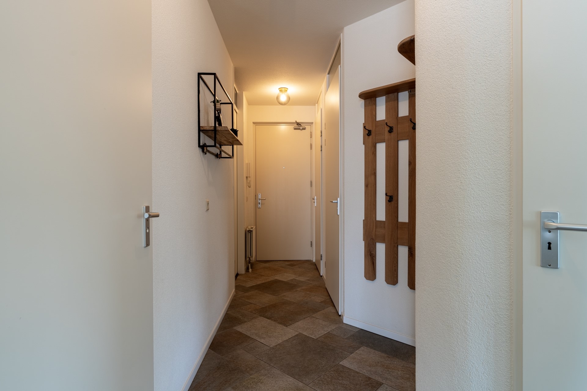 Je komt binnen via de centrale entree beneden. Daarna pak je de trap of lekker makkelijk de lift naar jouw verdieping. Vanuit de hal loop je zo naar de slaapkamers, het toilet, de bijkeuken, de keuken of badkamer. Het toilet is netjes afgewerkt met een zwevend closet en een fonteintje. In de woonkamer zorgen grote ramen voor lekker veel licht en uitzicht – en ze zijn ook nog voorzien van elektrische rolluiken.