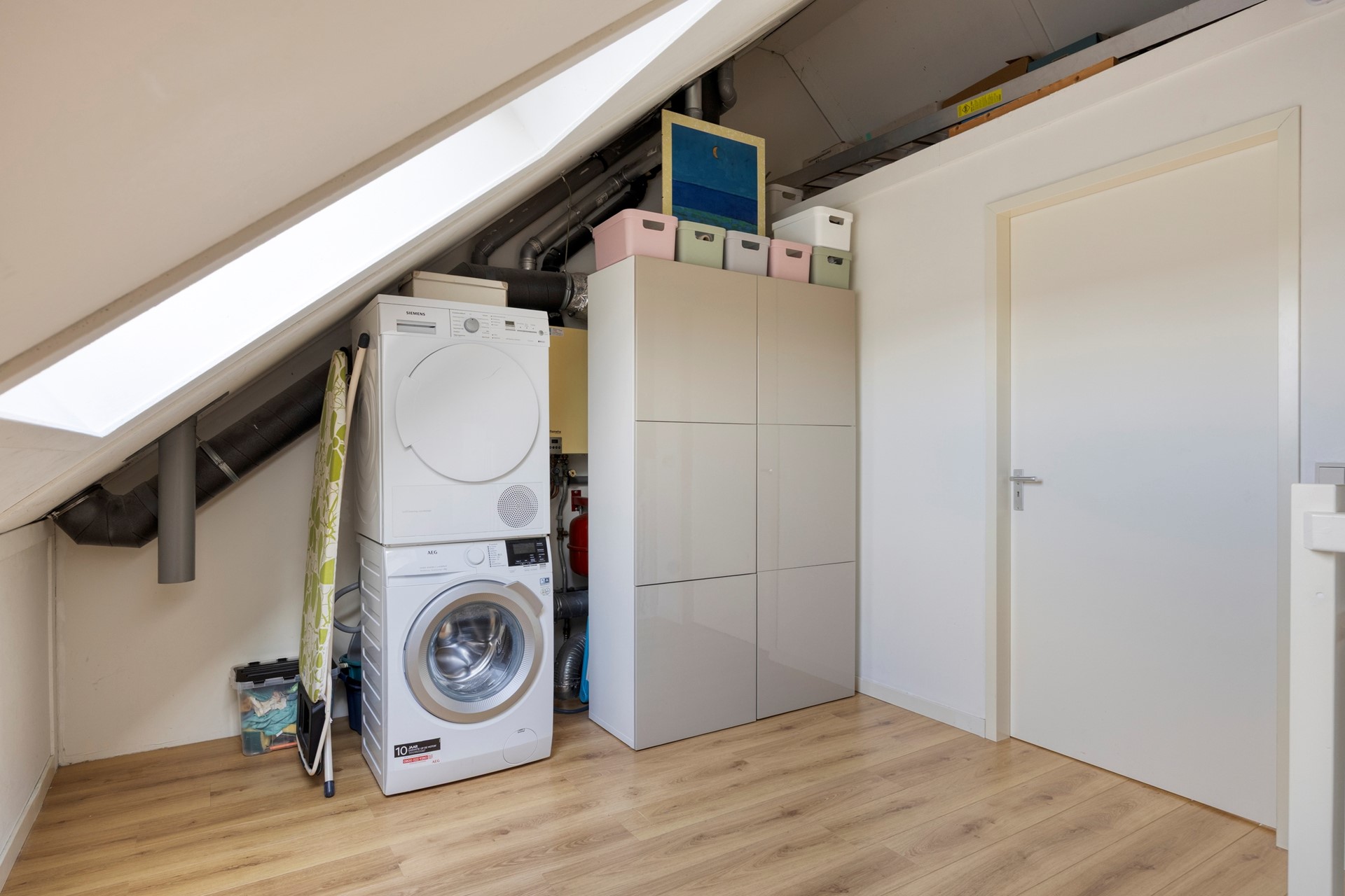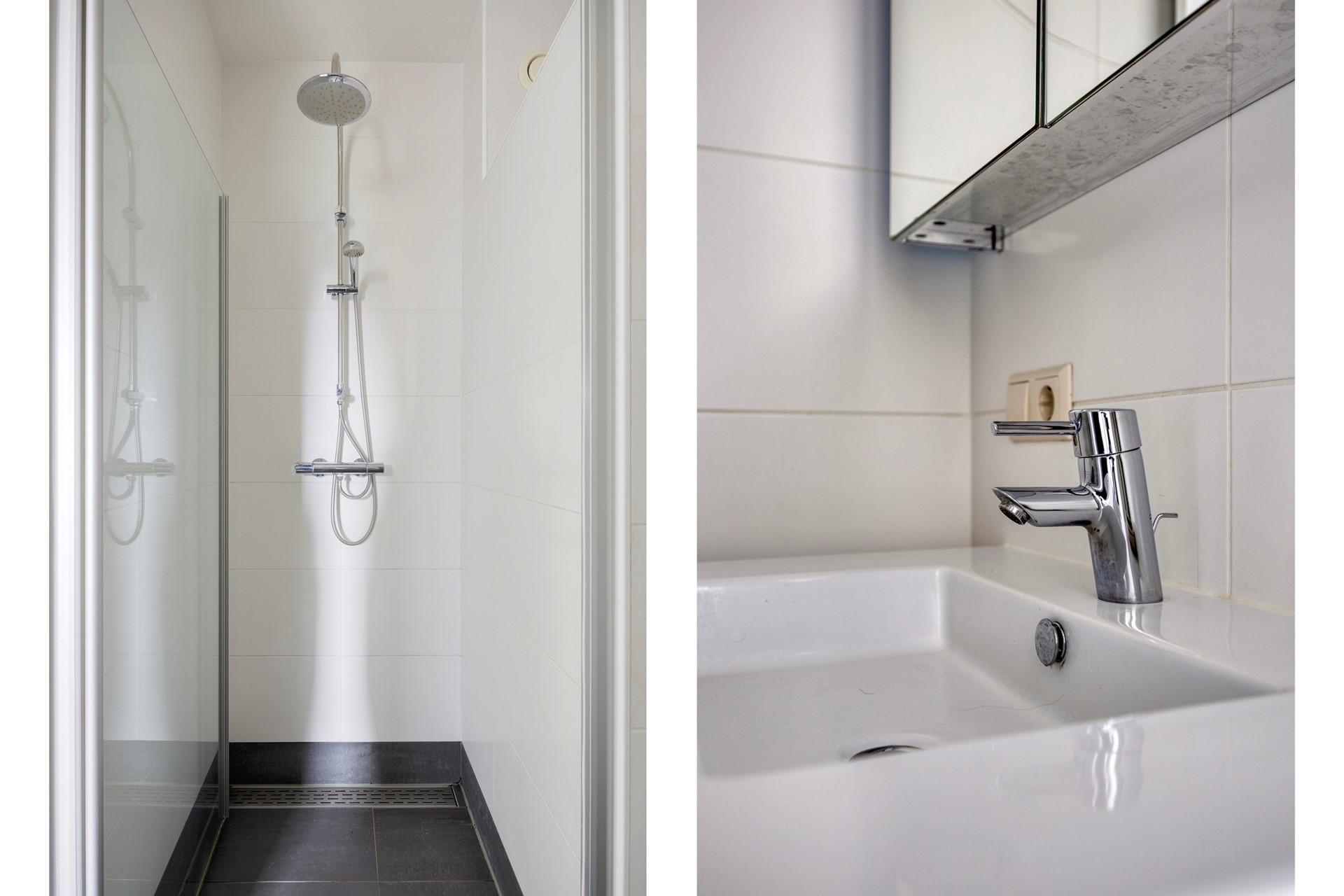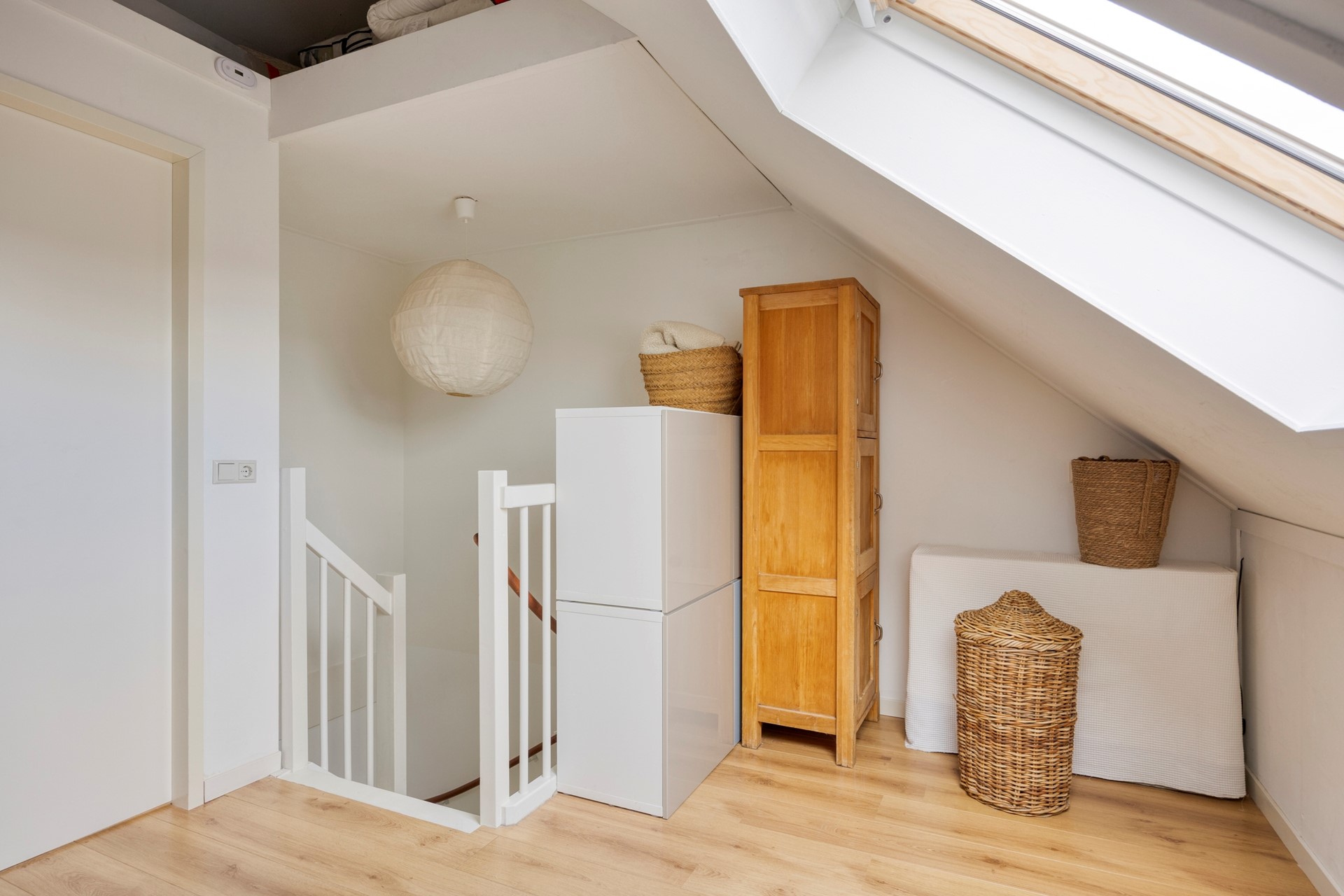 Op de eerste verdieping ligt een moderne gietvloer en bevinden zich twee ruime slaapkamers, beide keurig afgewerkt en voorzien van rolluiken en vaste horren. De badkamer is praktisch en fris: ingericht met een afsluitbare inloopdouche, toilet, wastafelmeubel en een handdoekradiator. Op de tweede verdieping vind je een voorzolder met wasmachine- en drogeraansluiting en een extra (slaap)kamer met dakkapel – ideaal als logeer- of werkruimte. Alle muren zijn glad afgewerkt en alles is keurig geschilderd en gesausd. Boven deze verdieping bevindt zich bovendien nog een bergzolder, perfect voor het opbergen van seizoensspullen en andere spullen die je niet dagelijks nodig hebt.