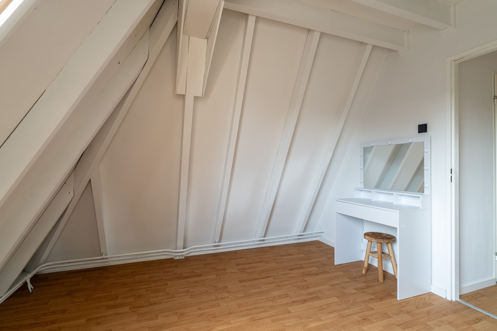 Overloop met vide en ruimte voor een werk- of leeshoek, aparte was-/stookruimte met opstelling van de cv-combiketel (type Bosch, bouwjaar 2009) en aansluitingen voor wasapparatuur. De tweede, royale slaapkamer is voorzien van een inloopgedeelte voor kleding. De badkamer is keurig afgewerkt en recent voorzien van een vernieuwde douche. Verder vind je hier een wastafelmeubel en sanibroyeur toilet.